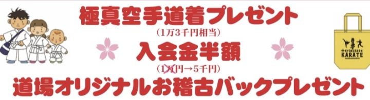 極真空手は、礼節、困難に負けない強さ、そして人の痛みを知り、思いやり、優しい心を養い、いじめない、いじめられない、本物の強さを見につける武道です。